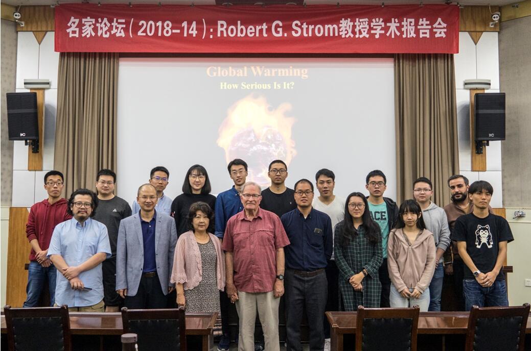 本次来访, Strom教授通过3个专题,系统讲授了:(1)银河系内高等生命存在的可能性;(2)全球变暖的严重性;(3)太阳系天体表面的撞击历史。Strom教授也与行星所师生就太阳系天体表面撞击坑统计定年技术、彗星撞击事件频率、和行星地表面地质过程研究中的多个问题进行深入探讨。