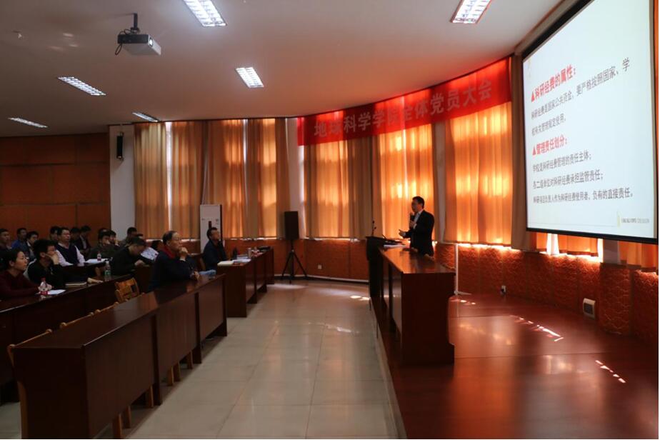 (通讯员 王珩)2017年10月27日上午,地球科学学院在东苑会议室召开全体教职工大会,所有在校教职工参加了此次会议。本次会议的主题是加强师德师风建设,严肃科研经费管理,深入推进试点改革。会议由地学院院长刘勇胜主持。