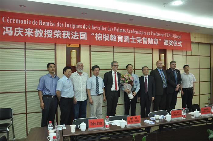 2014年6月12日冯庆来教授荣获“法国棕榈教育骑士荣誉勋章”颁奖仪式在学校举行,法国驻武汉总领事马天宁为其颁奖,以表彰他在中法科研国际合作及教育交流领域所做出的突出贡献。