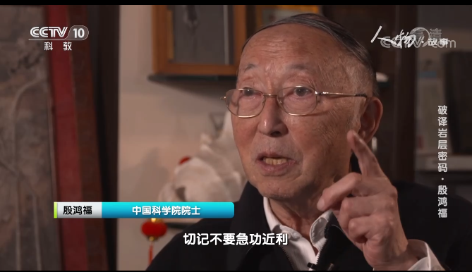 殷鸿福院士在节目中寄语自拍外流 工作者和大学生,“学术上不盲从,不随大流,敢于挑战权威”,“不要怕失败,失败了再来”,“搞科学研究、治学,切记不要急功近利”。