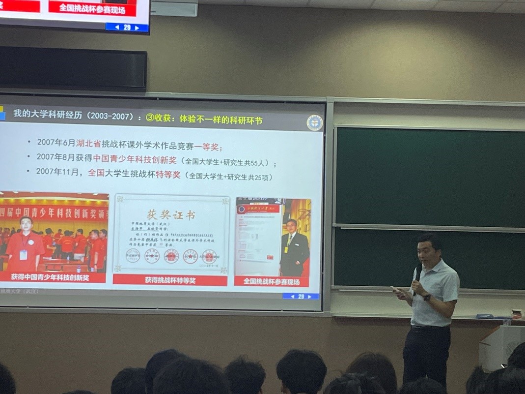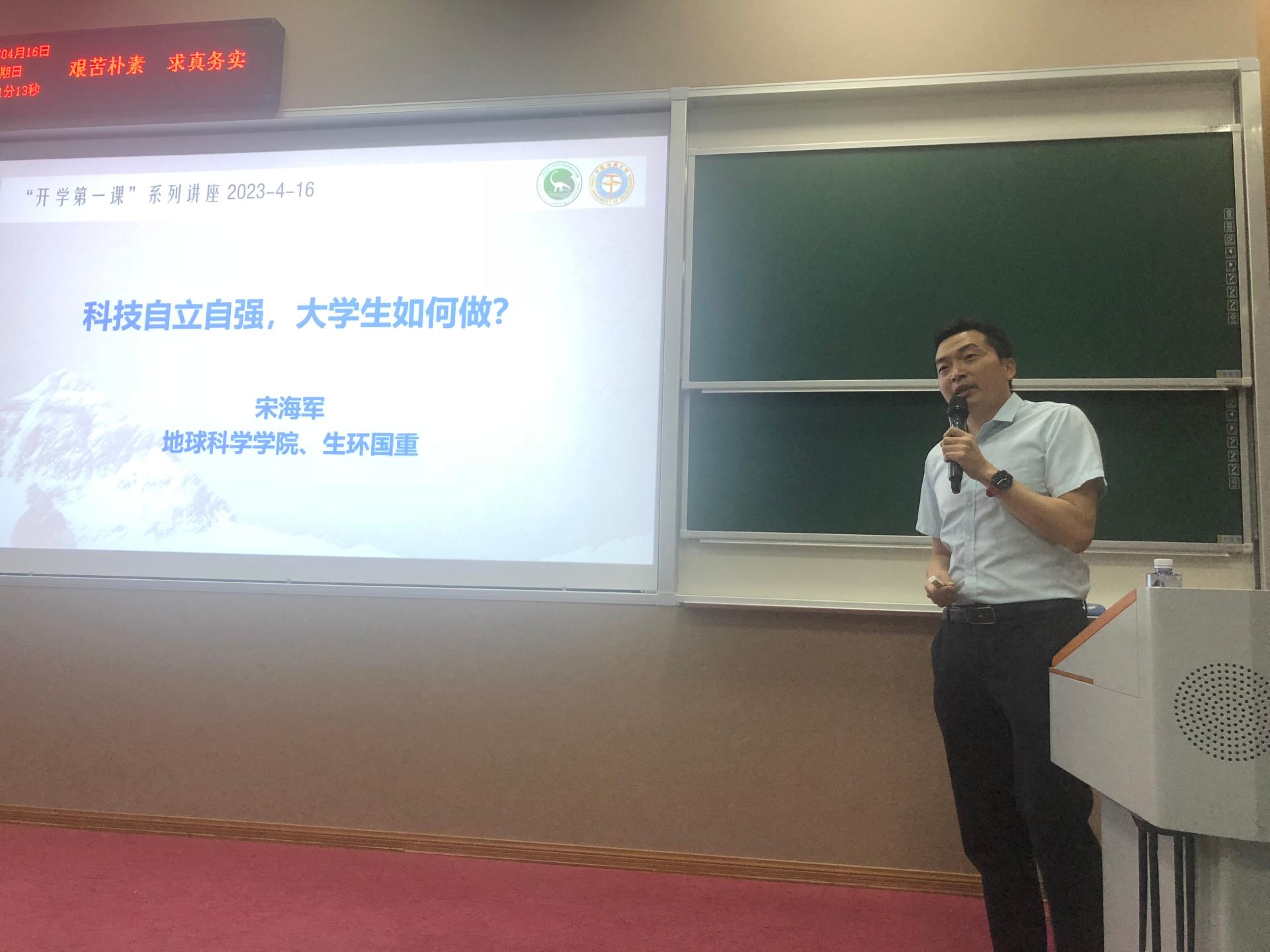 4月16日晚,第十七届“中国青年科技奖特别奖”获得者、自拍外流 地球生物学系教授、生物地质与环境地质国家重点实验室副主任,“挑战杯”大学生课外学术科技竞赛优秀指导老师宋海军教授以“科技自立自强,大学生该如何做”为题,为自拍外流 2022级本科生带来了一场精彩的主题报告。