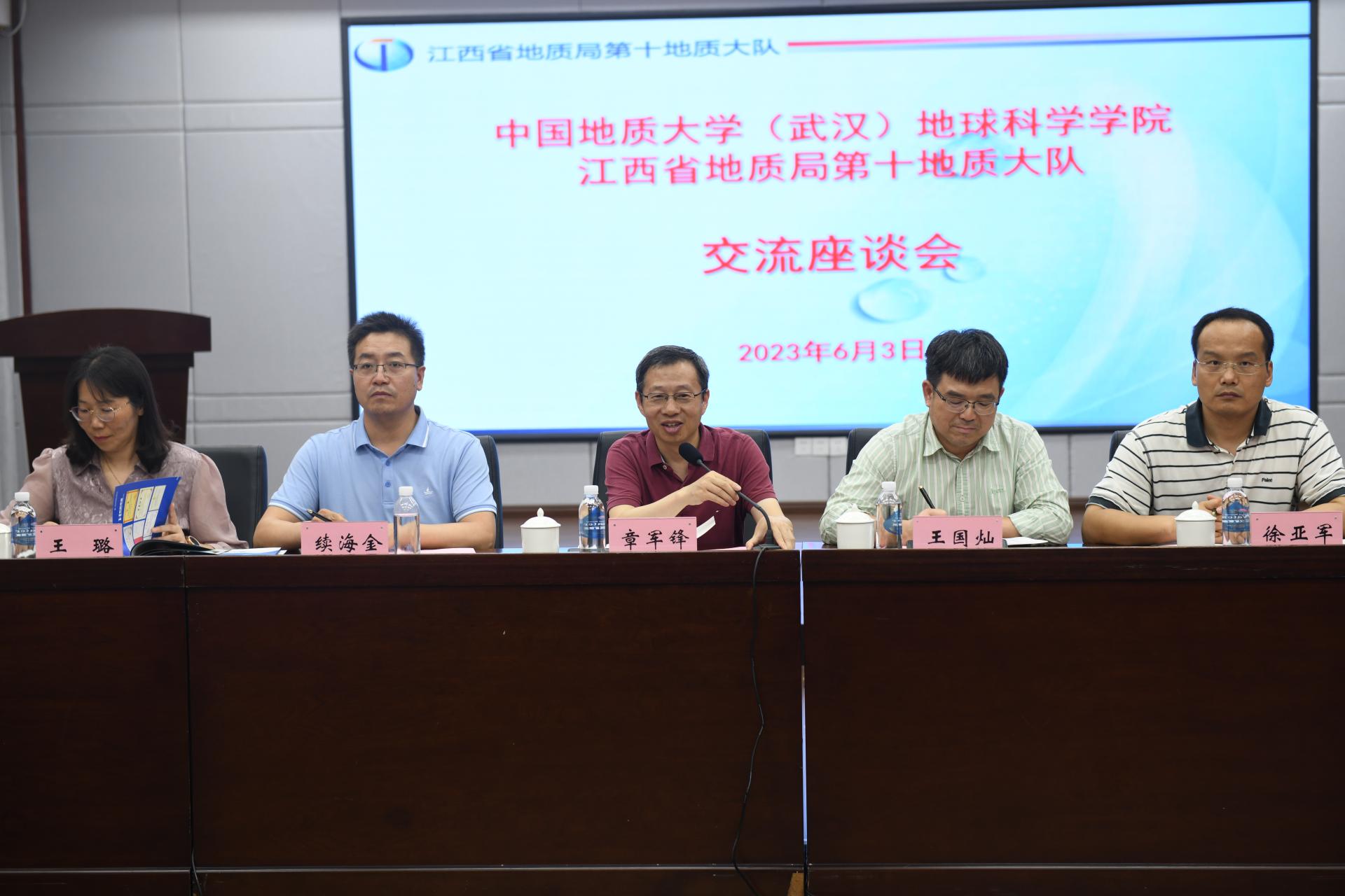 章军锋院长感谢第十地质大队对代表团此次考察调研的支持,并介绍了地球科学学院的基本情况和地质学学科的发展状况和学科优势。希望双方在科学研究、人才培养、党建等方面开展全方位合作,携手打造高校与生产单位合作的新典范,开创资源共享、互利共赢的新局面。王国灿教授介绍了中国地质大学(武汉)地质调查研究院的主要业务范围和优势,表示双方在矿产勘查、水文地质和环境地质等方面存在广泛的合作前景。