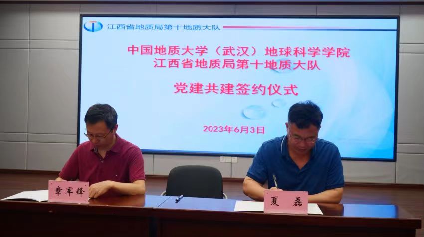 2023年6月3日,地球科学学院院长章军锋、地质调查研究院总工王国灿以及构造地质与地球动力学系一行24人赴江西省地质局第十地质大队开展 “访企拓岗”活动。上午,江西省地质局第十地质大队队长吴美仁、队副总工程师兼自然资源调查院院长欧阳永棚等陪同考察了江西省浮梁县朱溪钨铜矿区。下午,在第十地质大队举行党建和产学研合作签约仪式。第十地质大队队长吴美仁、党委书记夏磊和副总工程师兼自然资源调查院院长欧阳永棚等出席了合作座谈会和签约仪式。
