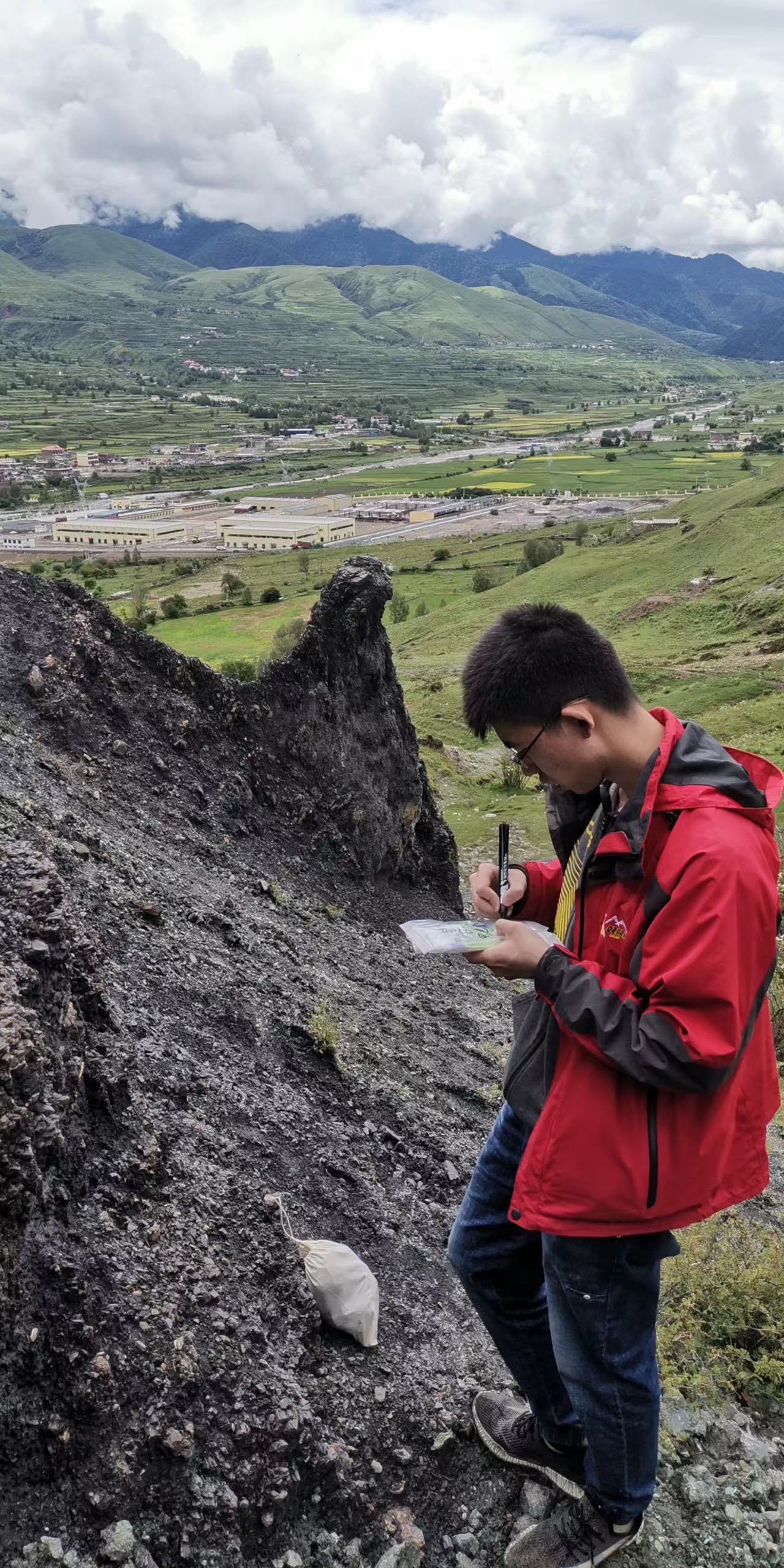 2021年夏天,他跟随老师进入西藏人迹罕至的地区,进行长达一个月的野外考察工作,先后多次在平均海拔约4000米的剖面上进行样品采集。为了避免雨天河水上涨导致剖面被淹,他曾冒着大雨在河边与时间赛跑,争分夺秒,在河水上涨之前完成对剖面的采样。尽管在当时饱受高原缺氧的困扰以及恶劣天气的影响,但他依然坚持下来,并在野外的实地考察过程中,积累了丰富的工作经验,获得了许多宝贵的第一手资料。