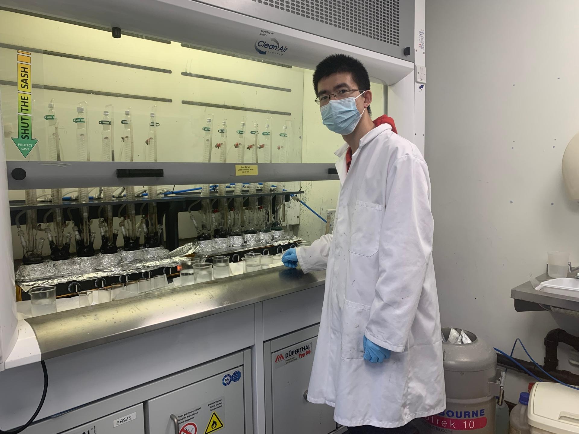 野外考察结束之后,他又立刻回到实验室进行样品前处理工作。科学研究需要认真仔细,不怕麻烦,而在实验室中对样品的测试更是如此。为了获取更加精确的实验数据,在实验室处理测试过程中,他曾连续几天对同一批样品的碳同位素进行多次的对比测试分析研究,经过反复论证最终获得高质量的实验数据。凭借扎实的工作基础,赵赫成功获批国家公派留学项目资助,赴英国利兹大学进行为期一年的联合培养。在全球有关铁、磷组分最好的实验室,师从利兹大学Simon教授学习,从查阅文献资料到实验数据的分析,度过了一段充实的海外学习生活。