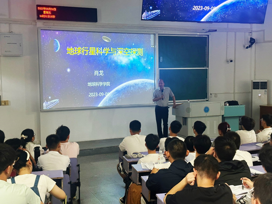 为帮助2023级新生了解和认识地球行星科学,增强专业兴趣,坚定专业信心,9月8日下午,我院肖龙教授在教三楼208教室为全体2023级本科新生讲授了一堂生动有趣的专业导论课。