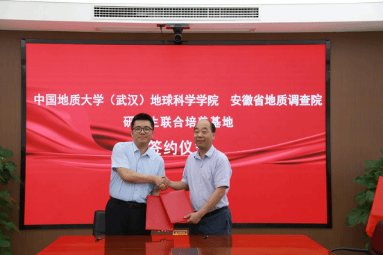 随后,双方签署了研究生联合培养基地合作协议,并举行了揭牌仪式。此次合作的签订标志着地球科学学院与安徽省地质调查院在人才培养和科研合作方面迈出了重要一步,为研究生实践能力的提升和科研成果转化提供了新的平台。