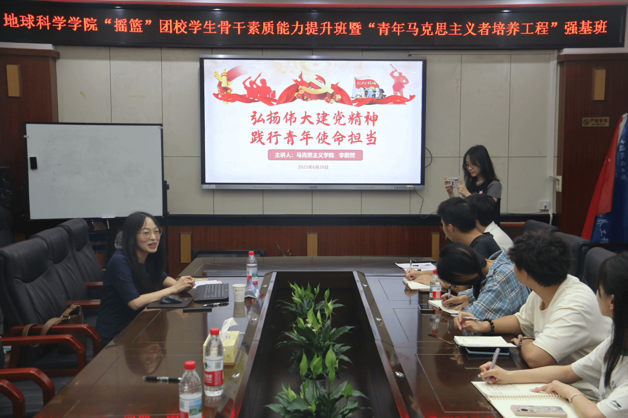 为深入贯彻落实习近平总书记关于青年工作的重要思想,扎实推进“青年马克思主义者培养工程”,着力提升我院学生骨干的综合素质与履职能力,充分发挥其示范引领作用,更好助力全院学生成长成才。6月28日上午,地球科学学院“摇篮”团校学生骨干素质能力提升班暨“青年马克思主义者培养工程”强基班在主楼308会议室正式开班。学校团委副书记刘明辉、马克思主义学院副教授李蔚然、学院团委书记滕笑丽参加开班仪式。滕笑丽主持仪式。