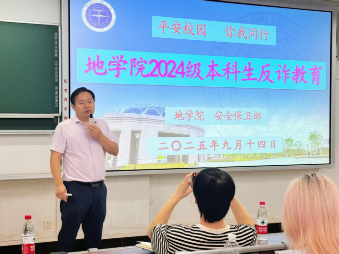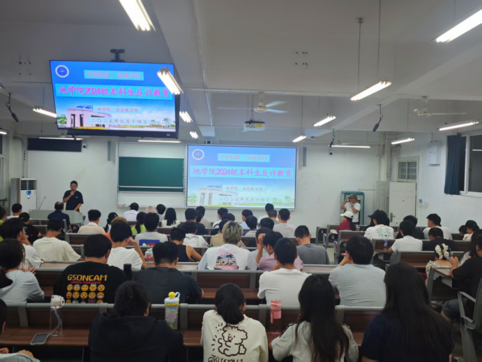 新学期伊始,为帮助2024级同学更好地开启校园生活,明确学习目标,加强安全防范意识,地球科学学院于9月14日晚在北综楼202教室召开了2024级新学期年级大会。学院党委副书记李欢欢老师、安全保卫部法律援助办主任魏景明老师、安全教育科副科长罗元胜老师、2024级辅导员秦傲、牛昊宇以及2024级全体本科生参会。
