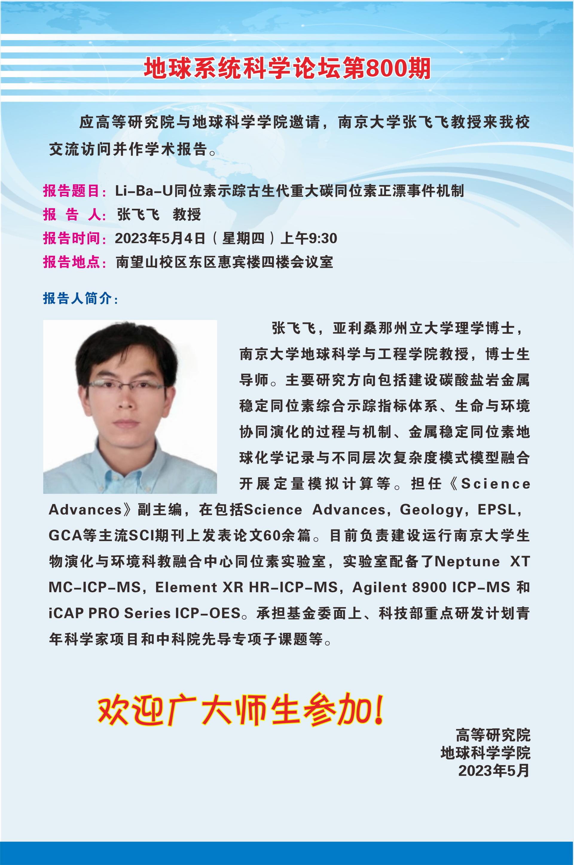【5月4日】地球系统科学论坛(第800期)-张飞飞教授