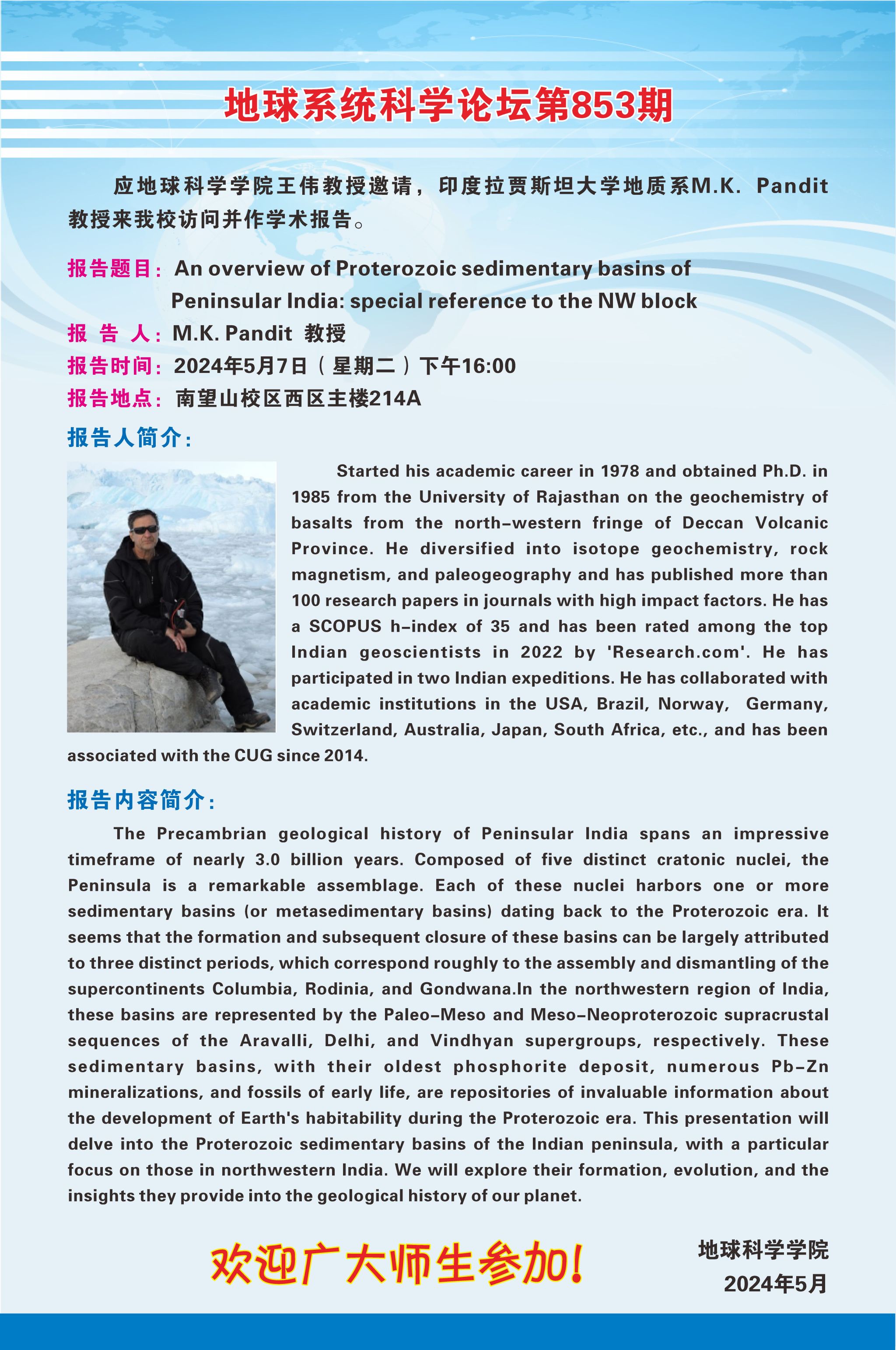 【5月7日】地球系统科学论坛第853期-Pandit教授