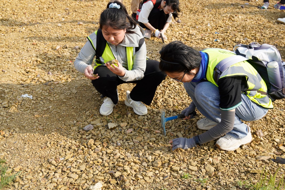 世界地球日组织学生赴蔡甸区伏牛山开展地质标本采集,让学生在野外锤炼地质技能,锻炼和巩固野外工作能力,在科学研究与专业实践中提升专业劳动素养和实践动手能力,引导学生将论文写在祖国大地上。
