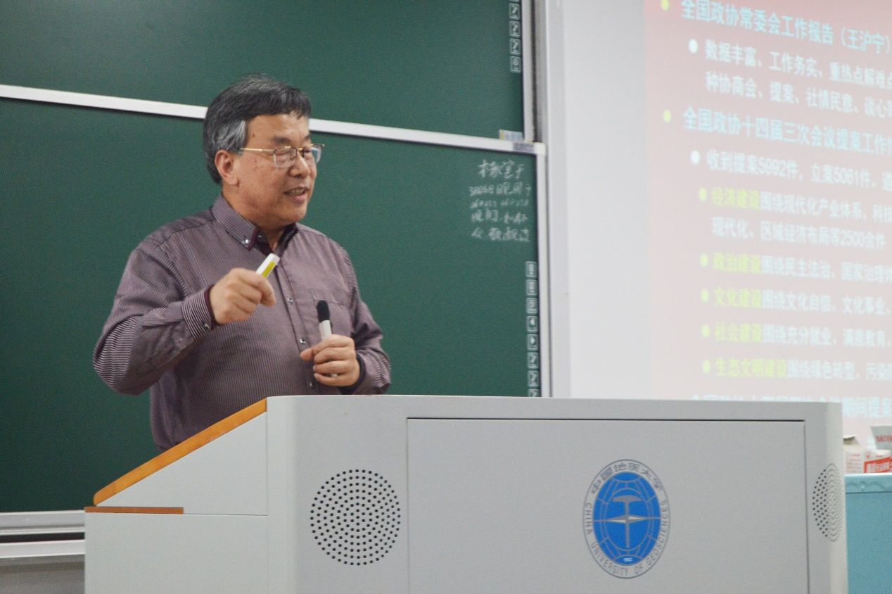 为深入学习贯彻2026年全国两会精神,以党建带团建为核心抓手深化党团共建育人实效,切实强化青年学子思想引领与学业成长赋能,3月26日,中国地质大学(武汉)地球与行星科学学院池际尚党支部、基地班党支部联合010251、010252团支部,在教三楼406举办“深学两会精神、笃行青春使命”党团共建主题活动。全国政协委员童金南教授,辅导员秦傲老师,优秀学生代表谷永生,以及党支部、团支部全体成员参加本次活动。
