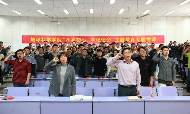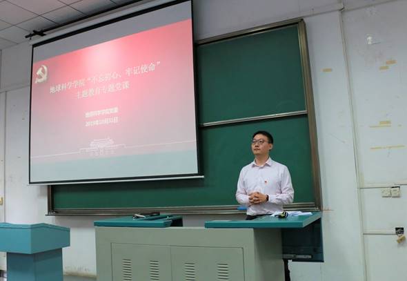 为扎实推进“不忘初心,牢记使命”主题教育,提升理论学习实效性,地球科学学院党委于10月31日下午在教三楼208 组织全院学生党员开展“不忘初心,牢记使命”主题党日暨专题党课活动,学院党委书记王甫,党委副书记张晓红,以及全体辅导员参加此次主题党日学习,本次主题党日由王珩主持。