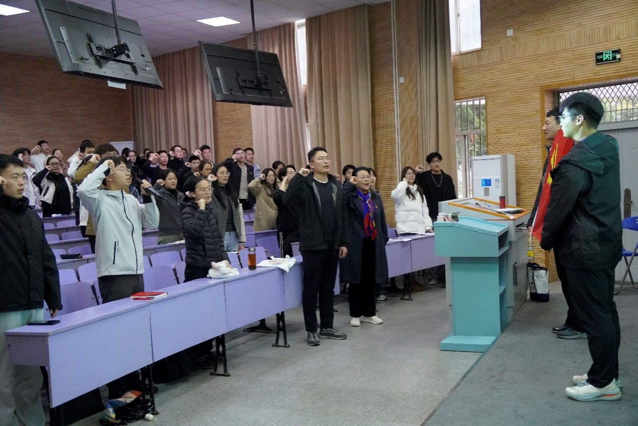 活动伊始,工程学院辅导员彭友元带领全体参训党员面向党旗,庄严宣誓,重温入党誓词。部分党建办入党积极分子在旁认真观摩,聆听学习,铿锵有力的誓言在会场内久久回荡,这一庄重仪式不仅强化了参训党员的身份意识与责任担当,更让入党积极分子深受感染和感召,进一步坚定了其向党组织靠拢的信念,激发了全体参训人员不忘初心、牢记使命,扎实做好党务工作的前行动力。
