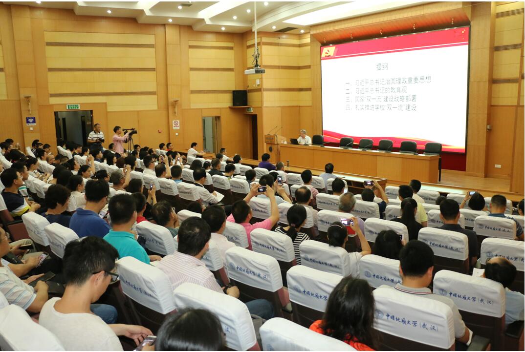 2017年6月20日晚七点,在迎宾楼报告厅,地学院党委组织学院教工党员开展6月份主题党日学习活动,邀请王焰新校长以《深入学习习近平同志治国理政重要思想扎实推进学校“双一流”建设》为题为全院教工党员讲党课。学院党委书记王甫同志主持本次党课。 王焰新从习近平总书记治国理政重要思想、习近平总书记的教育观、国家“双一流”建设战略部署和扎实推进学校“双一流”建设四个方面讲授本次党课。 王焰新以坚持和发展中国特色社会主义为主线,从一个“中国梦”、“两个一百年”奋斗目标、三个层面的社会主义核心价值观、“四个全面”战略布局、“五位一体”和五大发展理念等方面,对习近平同志治国理政重要思想进行了高度概括性的凝练并做了详细阐述。 王焰新系统的梳理了习近平总书记的教育观。他强调“立德树人”是高等教育的根本任务,要求教育事业不仅要传授知识、培养能力,更要把培养和弘扬社会主义核心价值观落实到推进教育治理体系和治理能力现代化中去,引导学生树立正确的世界观、人生观、价值观。 王焰新对国家战略部署《统筹推进世界一流大学和一流学科建设总体方案》进行了解读。他回顾了“双一流”政策出台的背景,分析了“双一流”政策的主要内容与特点,结合学校在“双一流”创建过程中的实践与研究,他强调广大老师要加强对一流大学和一流学科建设规律的认识,坚持我校中长期“三步走”发展战略,推进学校早日建成地球科学领域世界一流大学。 最后,王焰新指出,全体党员教工要响应党的召唤,深入贯彻习近平总书记重要讲话精神,用习近平总书记治国理政新理念新思想新战略武装头脑,指导实践,推进工作,牢固树立政治意识、大局意识、核心意识、看齐意识,做“讲政治、有信念,讲规矩、有纪律,讲道德、有品行,讲奉献、有作为”的合格党员。要按照全国高校思想政治工作会议精神和要求,努力做好教书育人、科研育人、管理育人、服务育人、实践育人、文化育人,做“有理想信念、有道德情操、有扎实知识、有仁爱之心”人民满意的好老师。要按照学校“三步走”发展战略的布局和路径措施,为实现建设地球科学领域世界一流大学的地大梦而努力奋斗,为国家发展、人民幸福、人类文明进步做出新的更大的贡献,为党的十九大交上一份满意答卷。 环境学院党委、经管学院党委、科技平台党总支部各党委理论学习中心组成员和全体教工党员,科学技术发展院、审计处、学科办等基层党组织的教工党员也一起参加了本次党课学习。