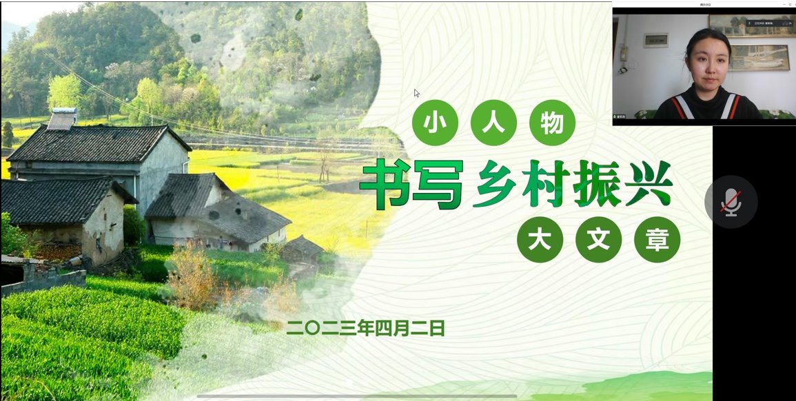 为深入学习宣传贯彻党的二十大精神、2023年中央一号文件精神以及脱贫攻坚精神,引导广大学生了解乡村振兴战略,持续开展“开学第一课”系列教育引导活动,坚定学生专业信心,推动学生立志专业报国,4月2日晚,我院2012级本科生、现四川省宜宾市长宁县井江镇高硐村党支部副书记董紫薇学姐与2021级本科生线上交流分享。