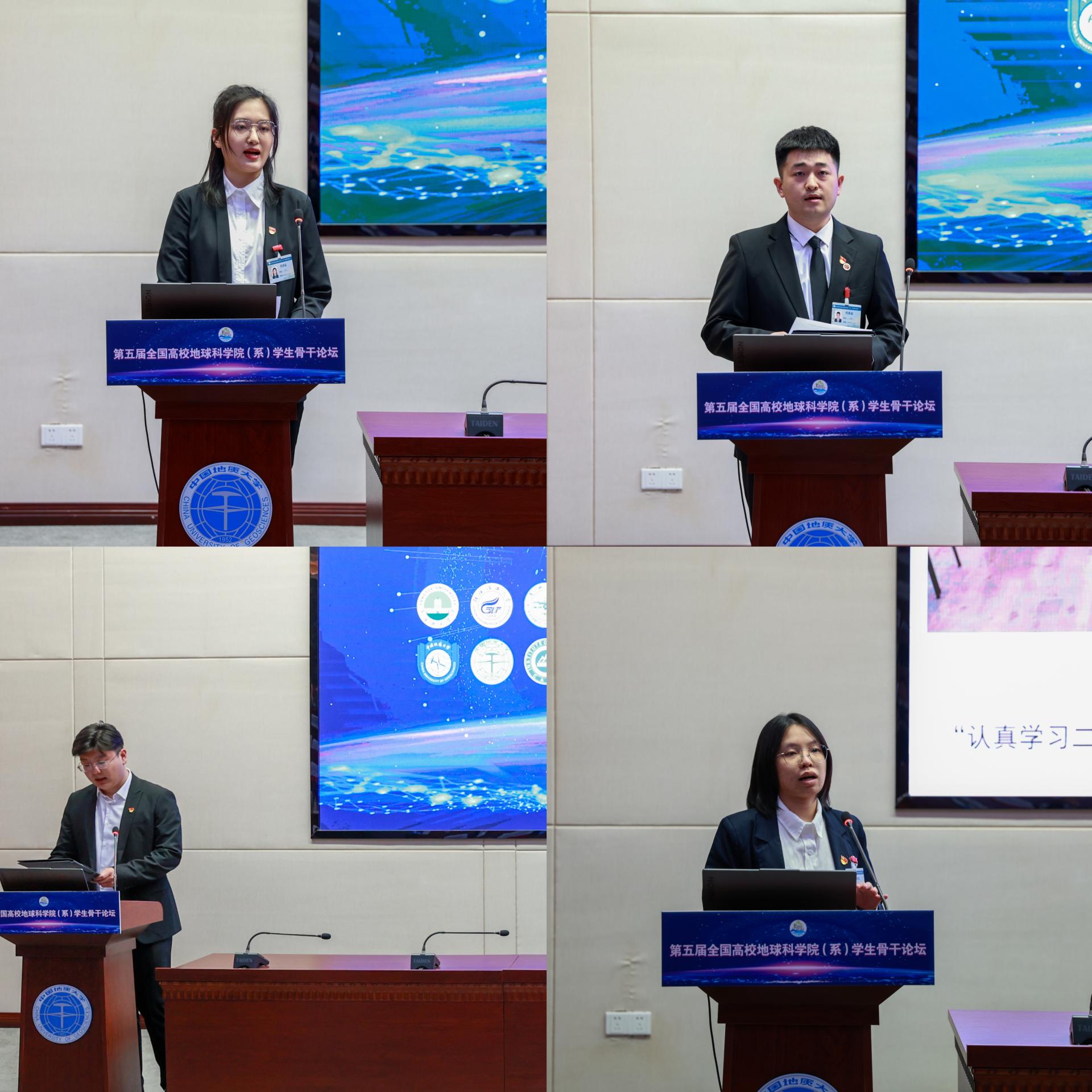 中国地质大学(武汉)地球科学学院代表门溪川呼吁学生骨干要赓续优良传统,在探索中谋前进,在笃实中求创新,牢记习近平总书记的嘱托,以理想者、担当者、吃苦者、奋斗者的姿态,奋进新征程,诠释新青春,彰显地学青年风采。长江大学代表白硕强调学生会要积极举办学科竞赛,为同学们搭好“比学赶超”之擂台,努力引导学生培养积极向上、奋勇争先的拼搏心态。兰州大学代表李子怡介绍了学生会改革成果,强调了学生会组织对学生的引领作用。武汉大学代表曹军表示学生会要重视同学意见,了解同学想法,解决同学困难。