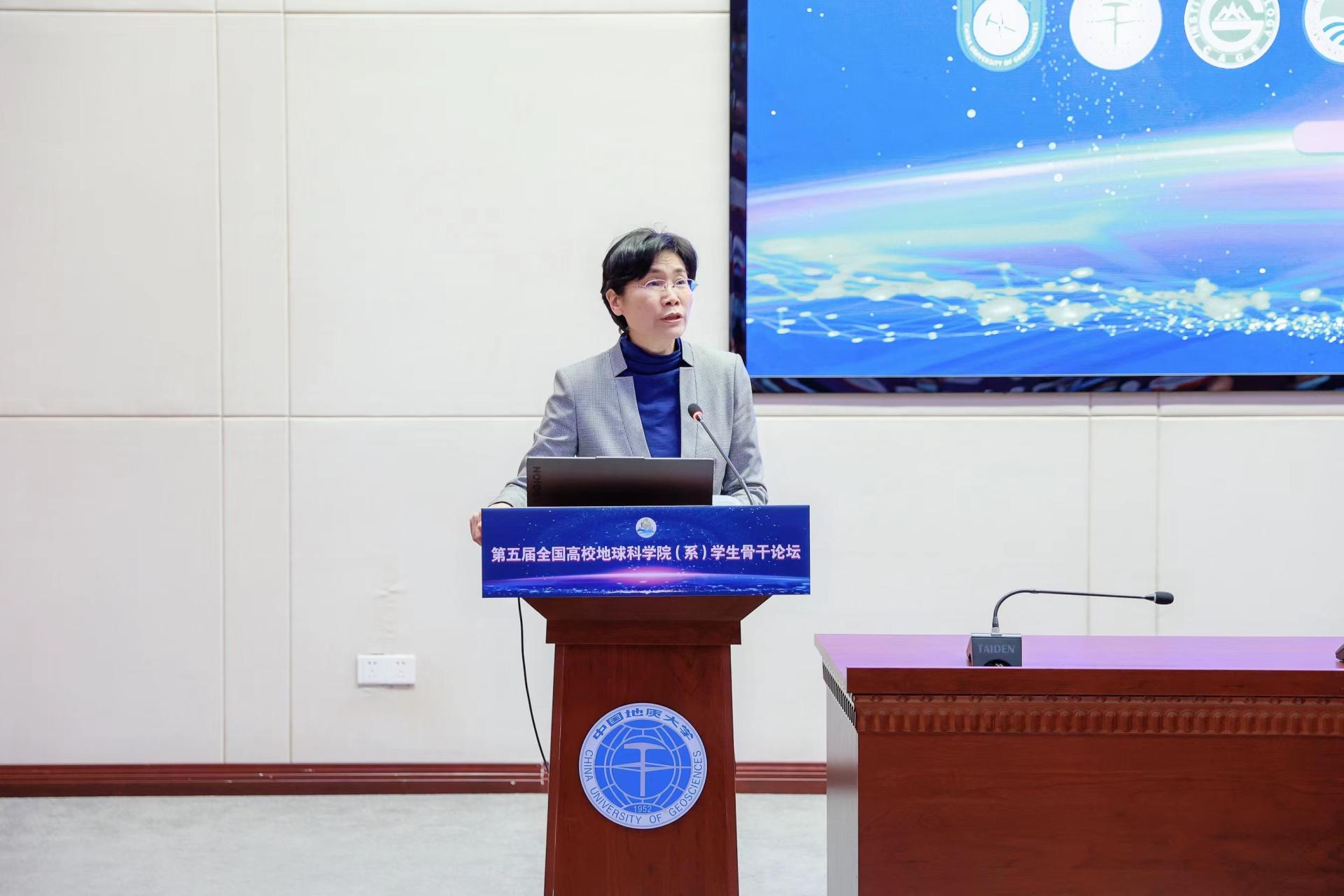 学校党委书记黄晓玫书记进行总结讲话,她表示参会的青年代表们都是各大高校和科研院所地球科学领域的优秀学生代表,承载着地学事业的未来,借此机会,向大家提出三点希望。一是坚定政治信仰,争做学习党的创新理论的“带头人”,带领同学们自觉做党的创新理论的坚定信仰者和忠实实践者。二是练就过硬本领,争做强国建设的“奋进者”,将所学所知、创新创意转化为解决实际问题的能力,在建设美丽中国、宜居地球的生动实践中贡献智慧和力量。三是永葆奉献本色,争做热心服务同学的“知心人”,聚焦当前同学们的思想困惑和实际需求,把服务同学作为工作的出发点和落脚点。