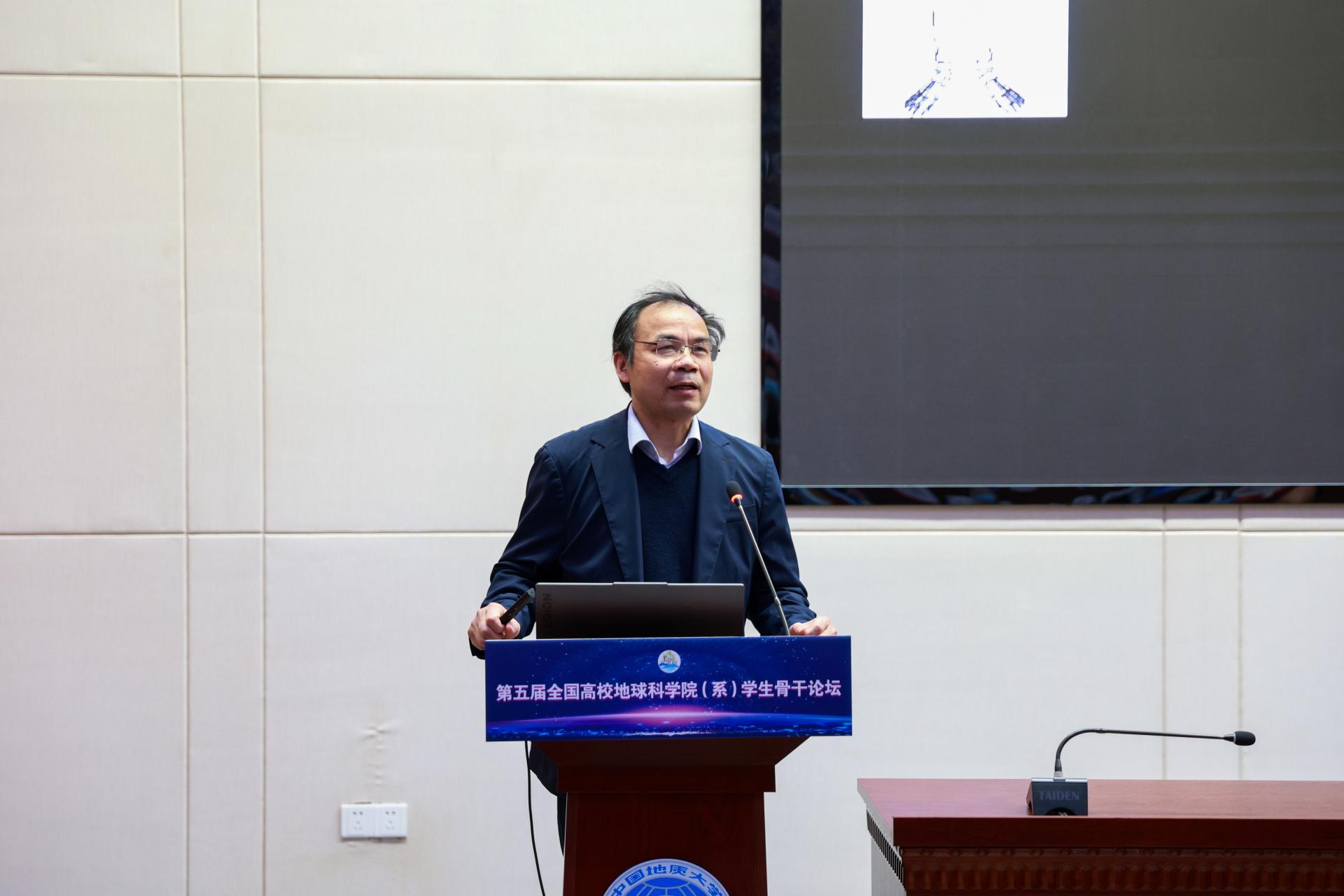 4月29日上午,第五届全国高校地球科学院(系)学生骨干论坛开幕式在教学综合楼A116报告厅举行。学校党委书记黄晓玫、中国科学院院士谢树成、学校办公室主任张玮、党委学工部部长邬海峰、党委研工部部长许德华、党委组织部副部长何建新、党委宣传部副部长魏海勇、校团委副书记郭小玉、地球科学学院院长章军锋、副院长朱宗敏以及来自武汉大学、南方科技大学、西北大学、中国矿业大学(北京)、中国科学院地质与地球物理研究所、中国地质科学院地质研究所、西南石油大学、桂林理工大学的相关领导、老师出席开幕式。