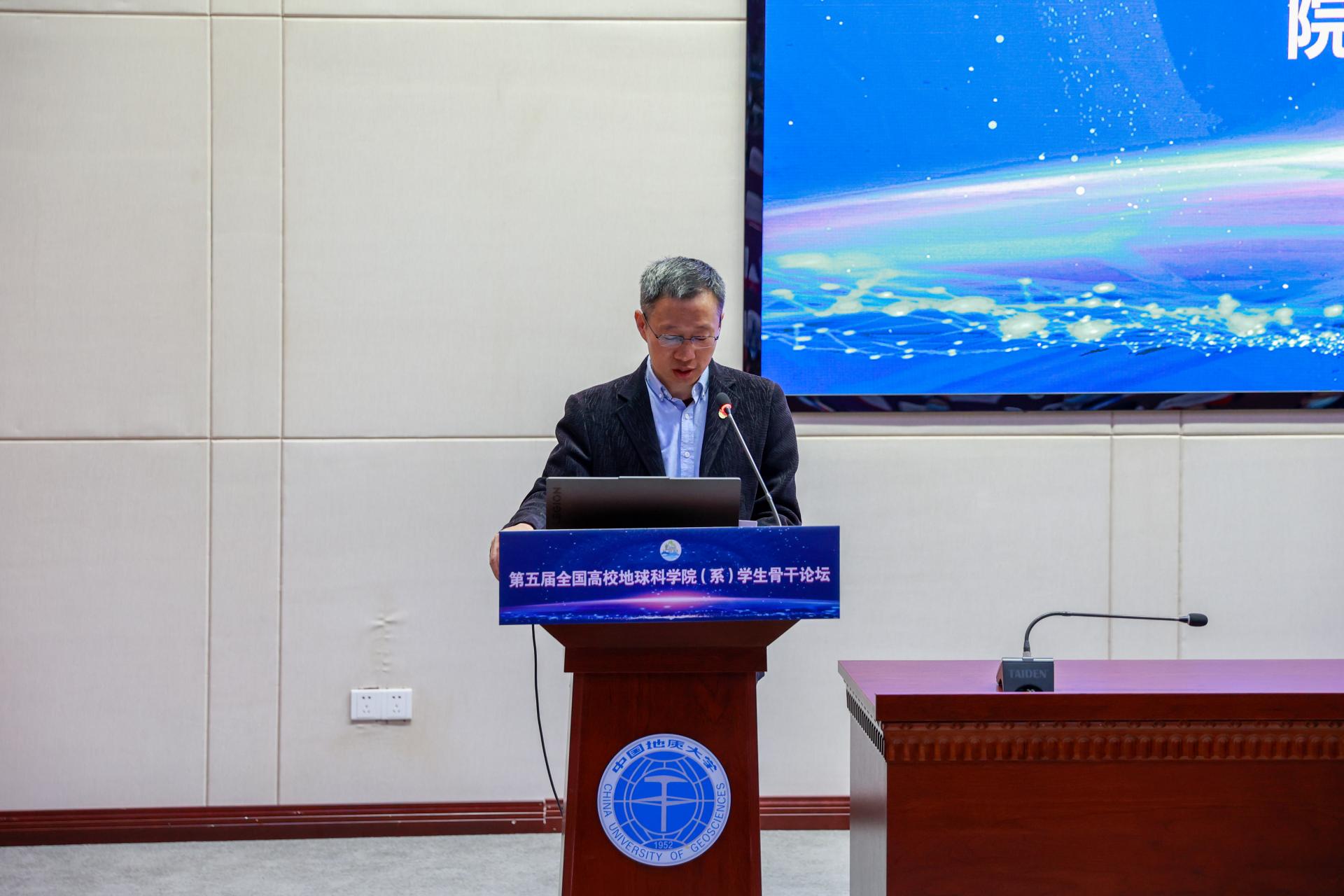 地球科学学院院长章军锋代表学院致欢迎辞,向与会单位的老师、学生表示最诚挚的欢迎。论坛从第一届的6所院校到如今第五届的22所院校,越来越多的兄弟院校加入学生骨干论坛的大家庭之中,章院长希望学生代表们珍惜此次论坛的机会,碰撞思想,交流经验,充分发挥好学生党员的先锋模范作用和青年学生骨干的榜样引领作用。