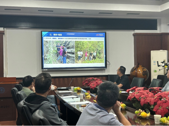 紧接着,赵德虎详细介绍了目前重庆渝东南萤石找矿项目的相关情况。他指出,该项目是近年来研究所地质找矿领域的一项重点工程,项目组在找矿方法、技术应用等方面取得了系列进展,对于推动地方新一轮战略找矿工作具有重要意义。赵德虎还分享了重庆渝东南萤石找矿项目组与我院牵头组织的地球化学找矿预测科研小组成员相识相遇的故事,希望未来双方能加强更深度合作。