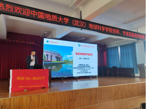 11月21日,学院党委副书记赵得爱、地球物质科学系教授马昌前、“地学之光”科普讲解队成员代表走进楚雄龙江中学,与学校第26届研究生支教团联合举办“把地球故事讲给你听”系列科普活动。马昌前教授首先以“改变世界的矿物岩石”为题,向师生科普了主要的岩石类型和形成过程,深入浅出地为同学们揭开了地质学的神秘面纱,为中学生们带来了一场精彩的科普盛宴。学院姜昕、李槟馨、罗明辉、李月如四位同学在科普小讲堂上为孩子们科普了古生物与矿物方面的知识以及池际尚院士为地质事业奉献终身的光辉事迹,让孩子们深刻感受到了老一辈地质学家的家国情怀,在科学家精神中汲取力量。