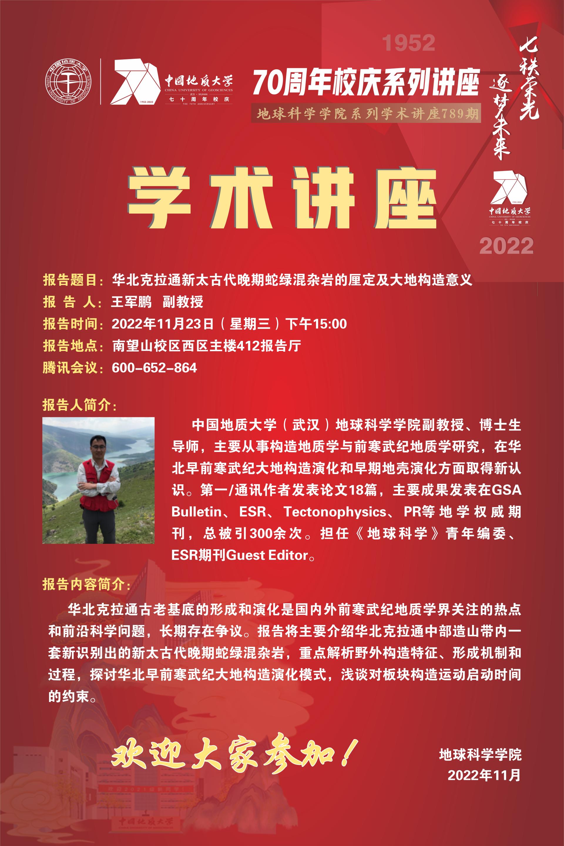 【11月23日】校庆系列学术活动---地球系统科学论坛(第789期):王军鹏 副教授