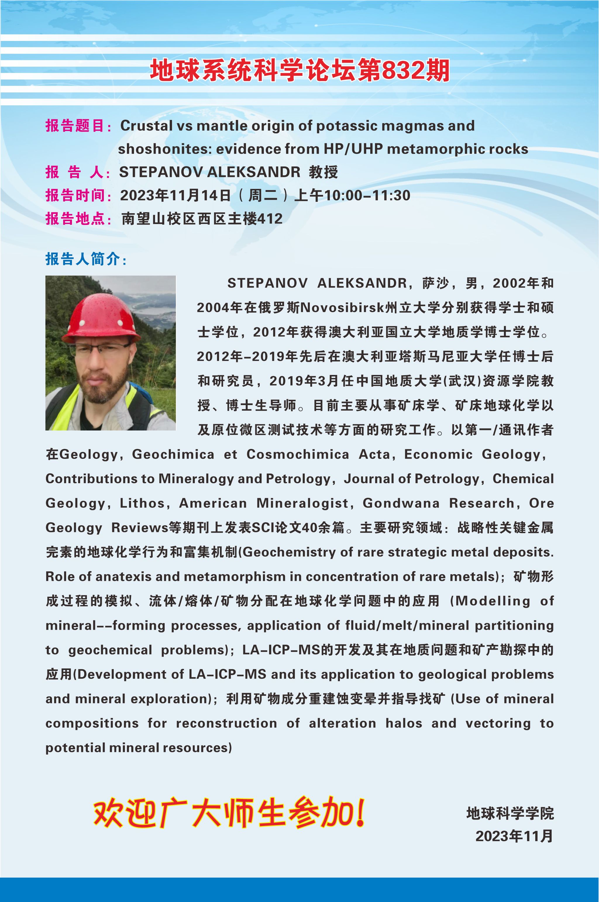 【11月14日】地球系统科学论坛(第832期)-STEPANOV ALEKSANDR教授