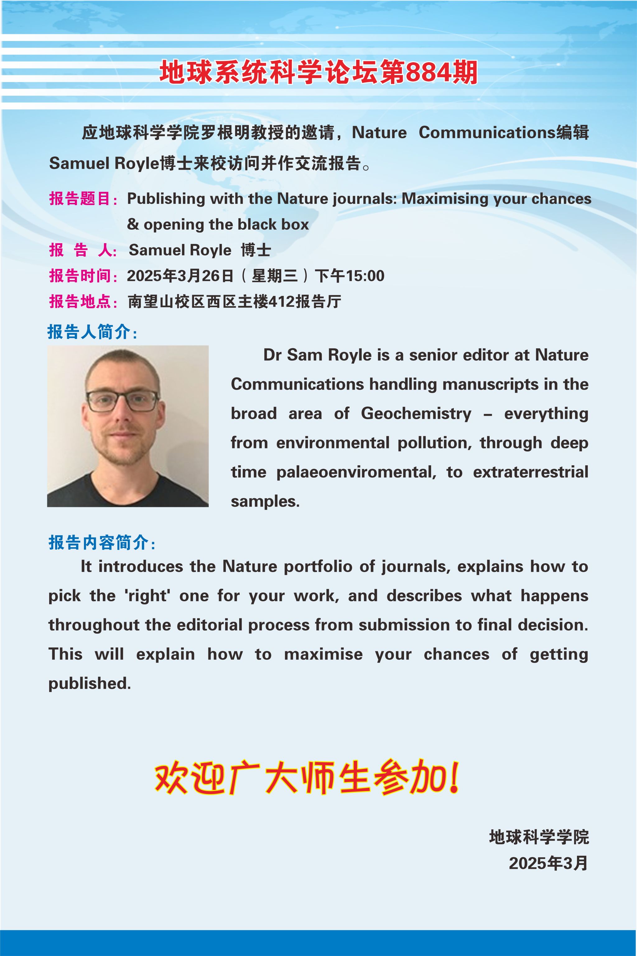 【3月26日】地球系统科学论坛第884期-Samuel Royle博士