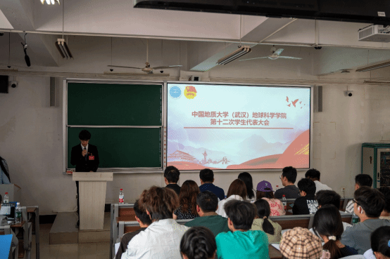 5月25日,地球科学学院第十二次学生代表大会在北综楼202教室召开。学院团委书记滕笑丽、学院辅导员秦傲老师、黄志炜老师,校学生会主席团成员阮继斌同学,与各年级学生代表130余人参加会议。大会由学院学生会主席团成员郝力师主持。