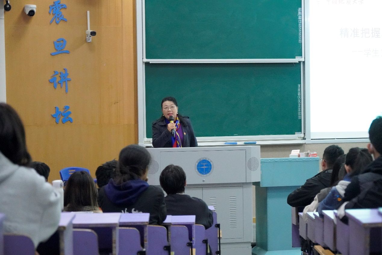 为进一步加强学生党务工作队伍建设,切实提升基层党建工作规范化、专业化水平,116日下午,地球科学学院、工程学院、机电学院、外国语学院在教三楼联合举办强基提质 联学共进党务工作专题培训。校级专职组织员于荣萍老师担任主讲,辅导员秦傲、彭友元、刘彪、黎颖及160余名学生党务工作骨干参加。本次培训由地球科学学院辅导员秦傲主持。